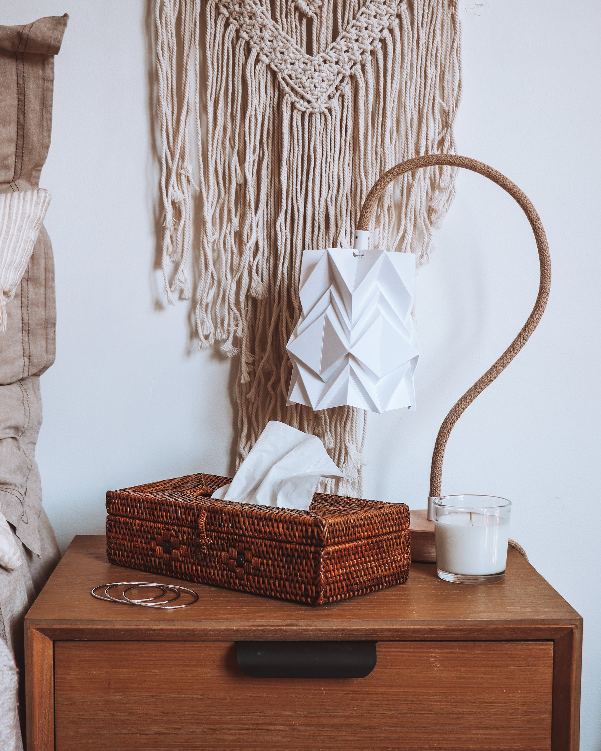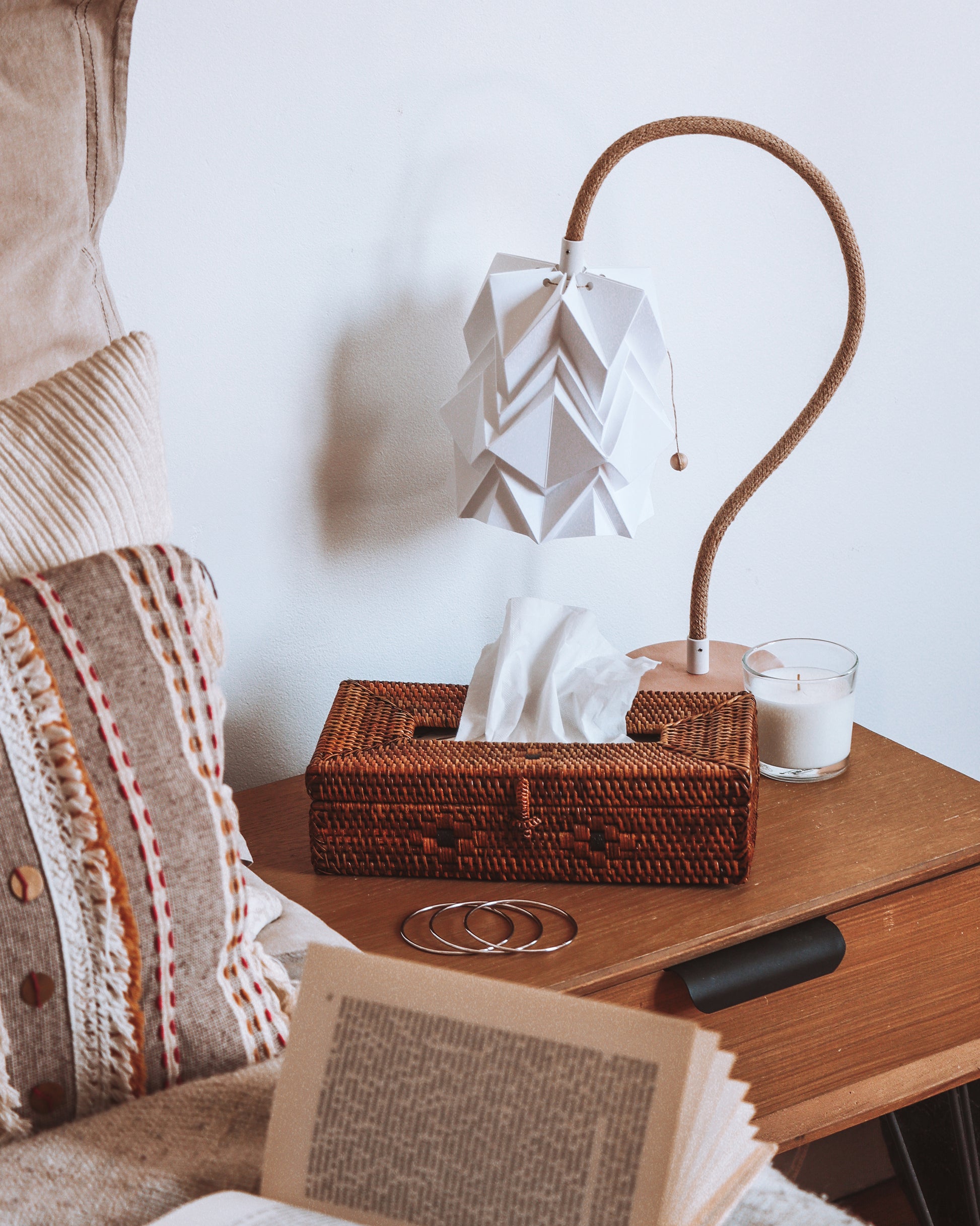 Les tons chauds du rotin complèteront n'importe quelle pièce, créant une ambiance confortable et organique tout en gardant vos mouchoirs soigneusement dissimulés et facilement accessibles.