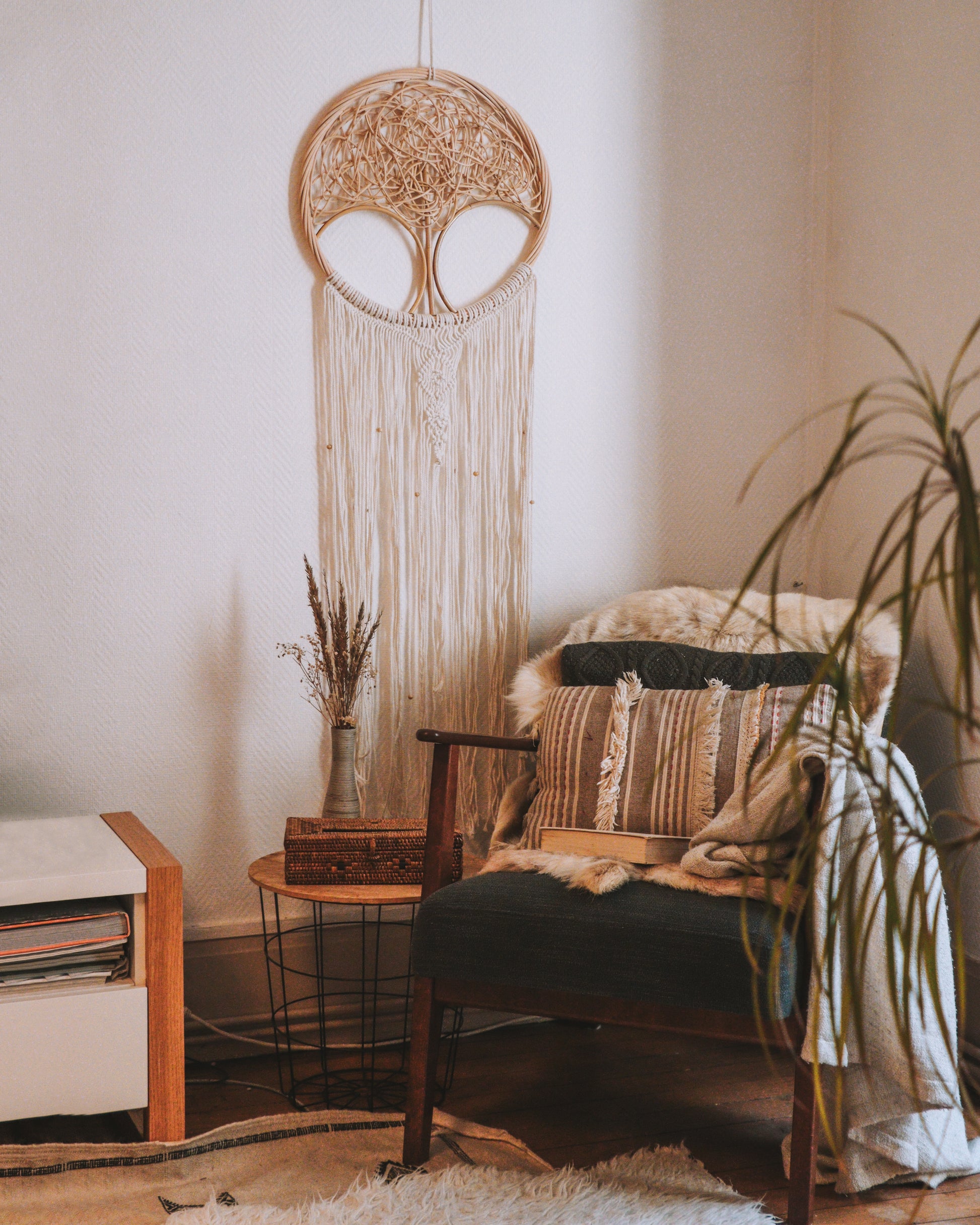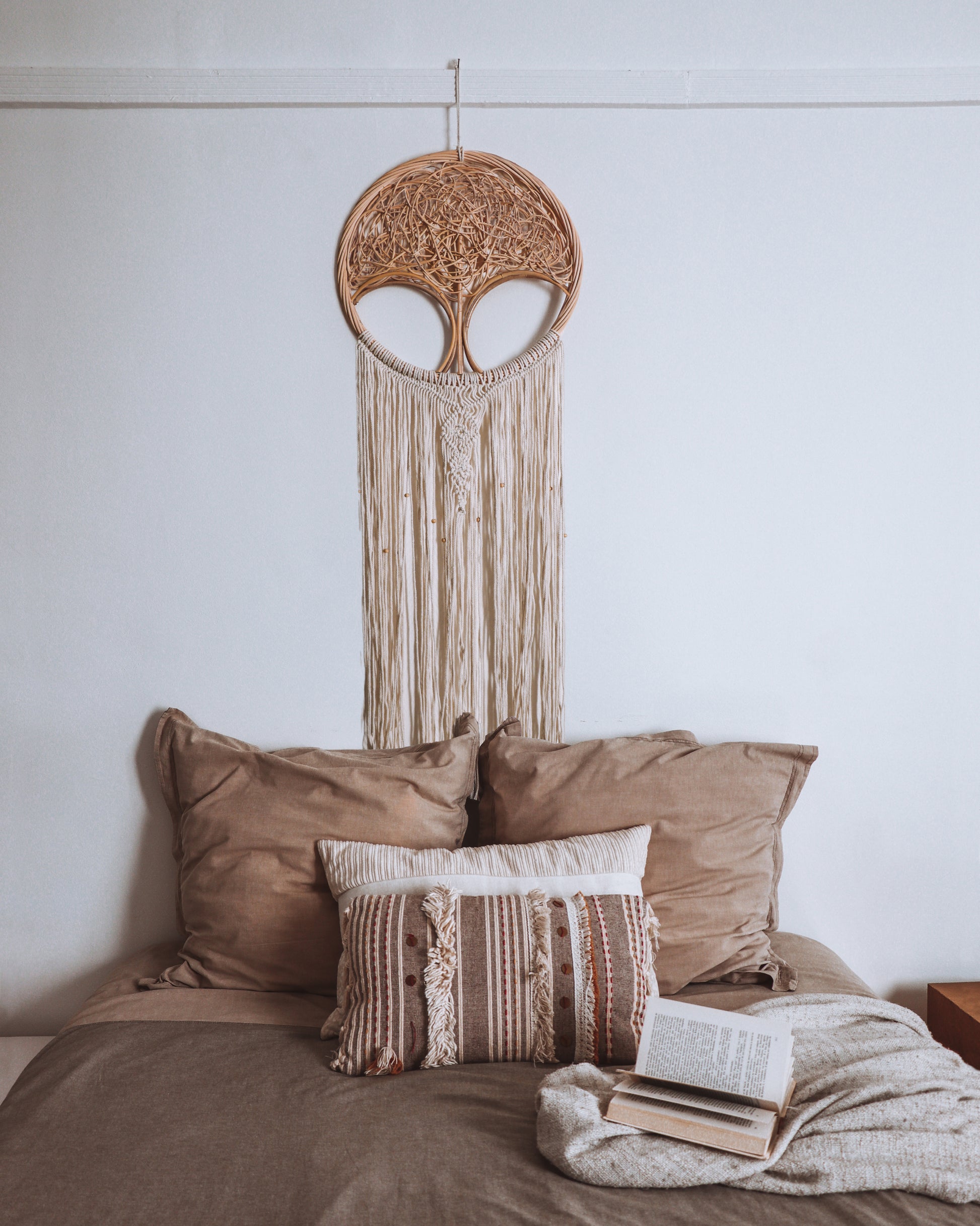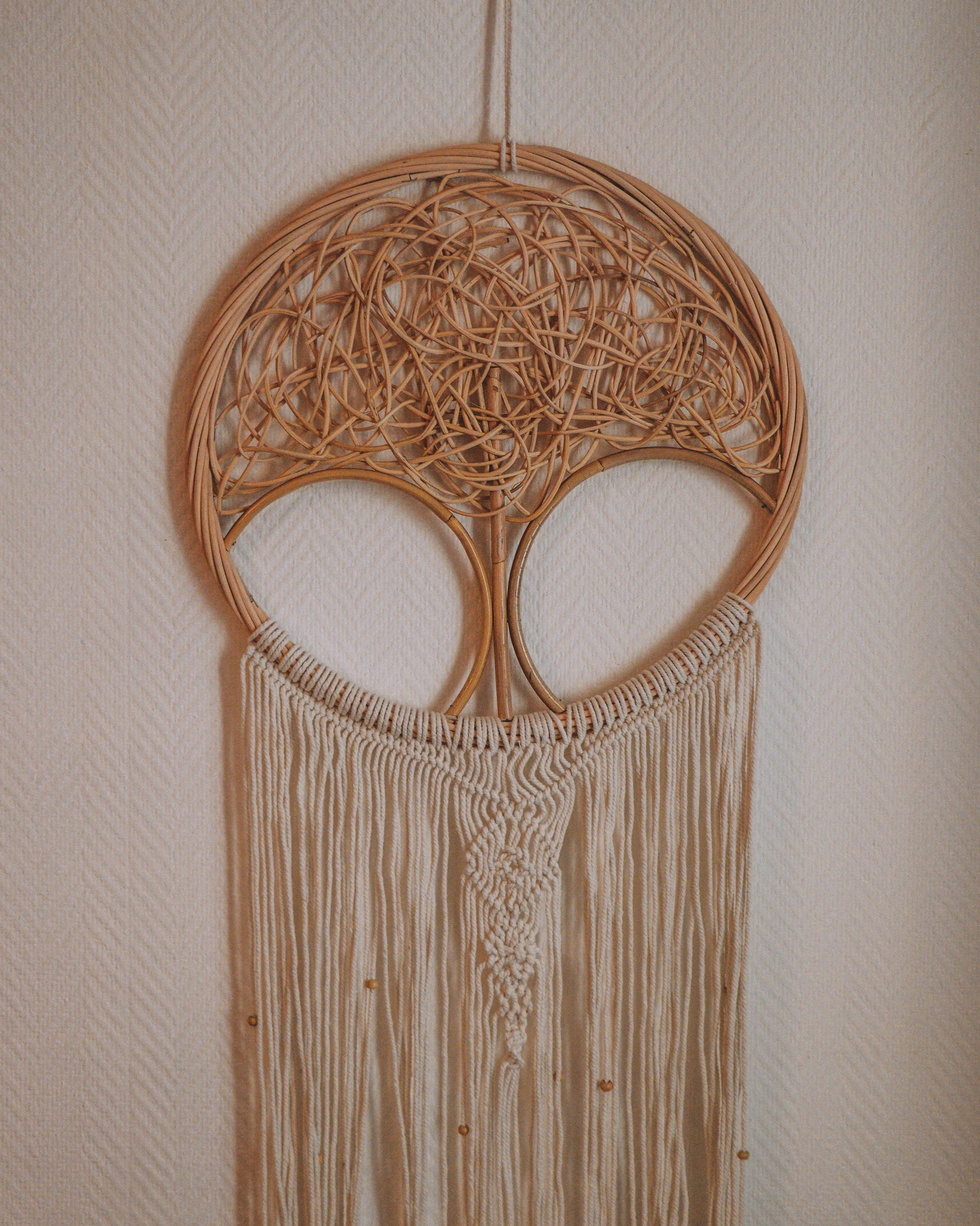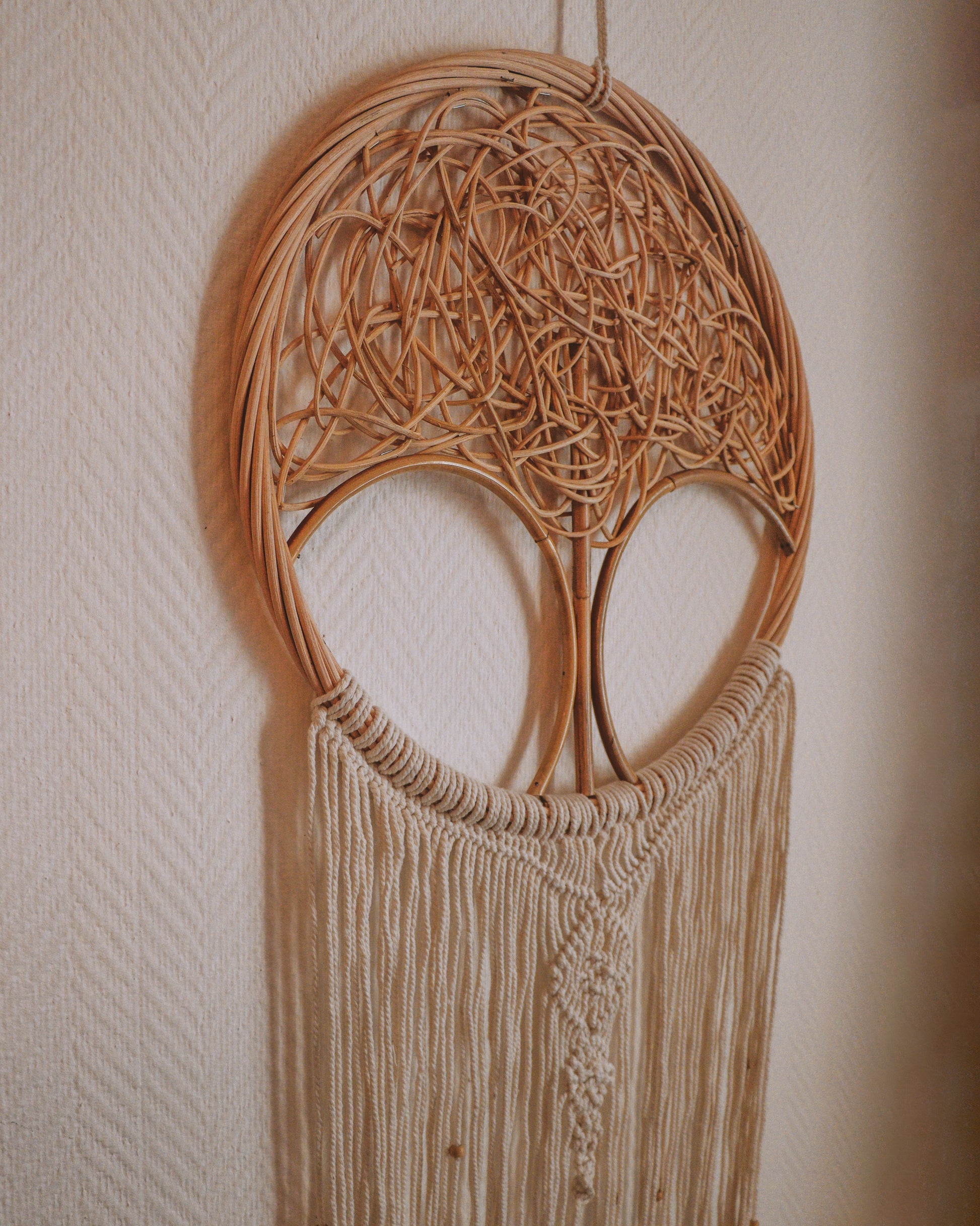 Décoration murale Arbre de Vie en rotin et macramé fait main de Bali