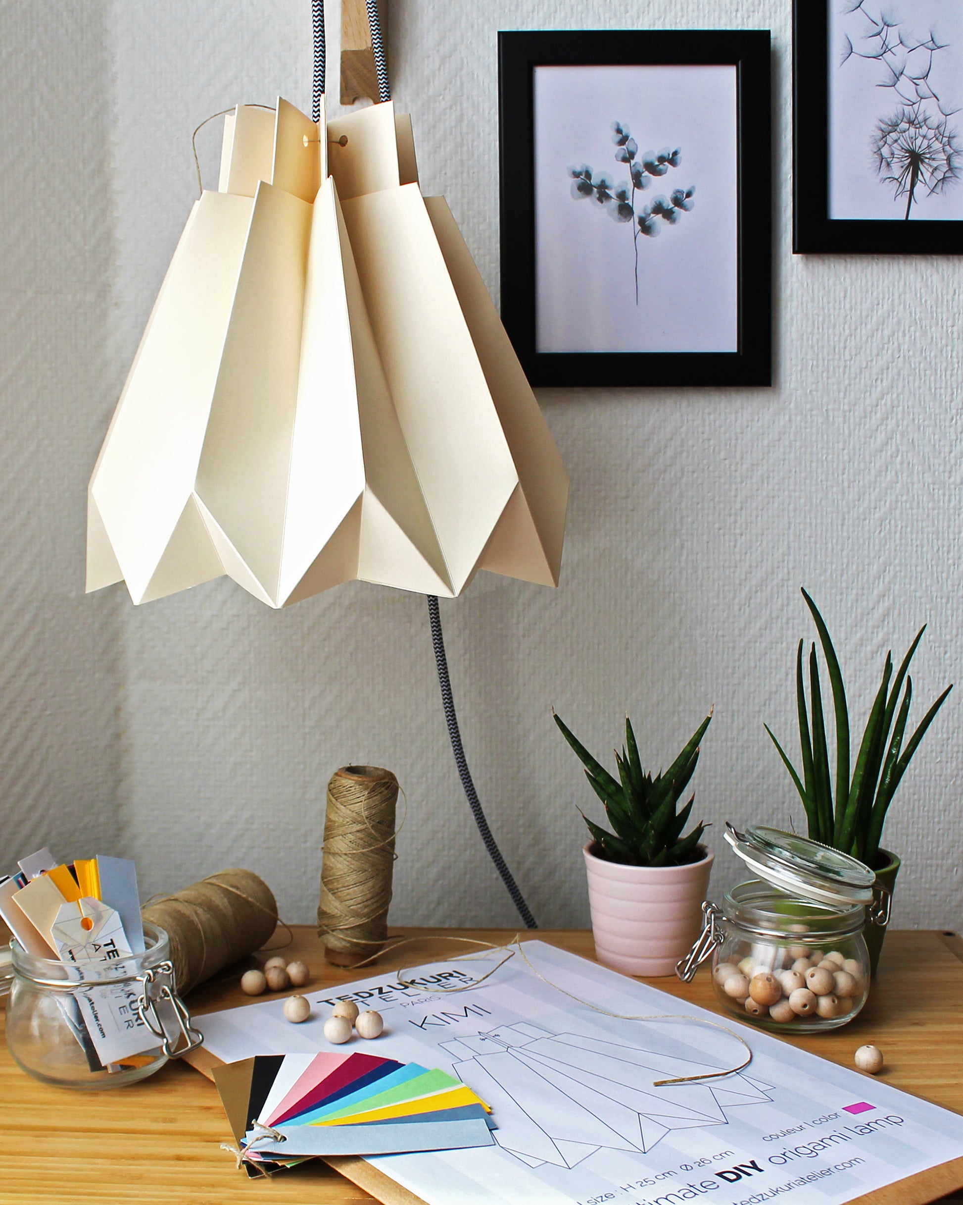 KIMI est un kit de papier pré-marqué pour faire un abat-jour simple et exquis, parfait pour un cadeau et pour ajouter une touche personnelle à n'importe quel espace.